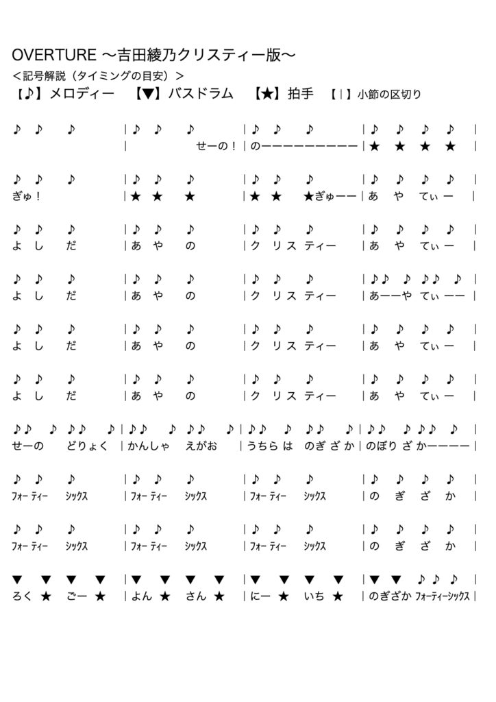 メインの3音部分に「よしだ」「あやの」「クリスティー」、4音部分に「あやてぃー」を