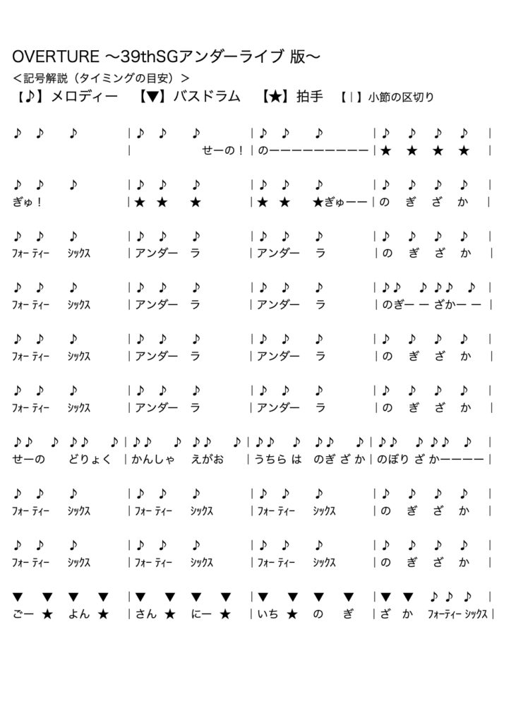 メインの3音部分に「フォー ティー シックス」「アンダー ラ」、4音部分に「の ぎ ざ か」を