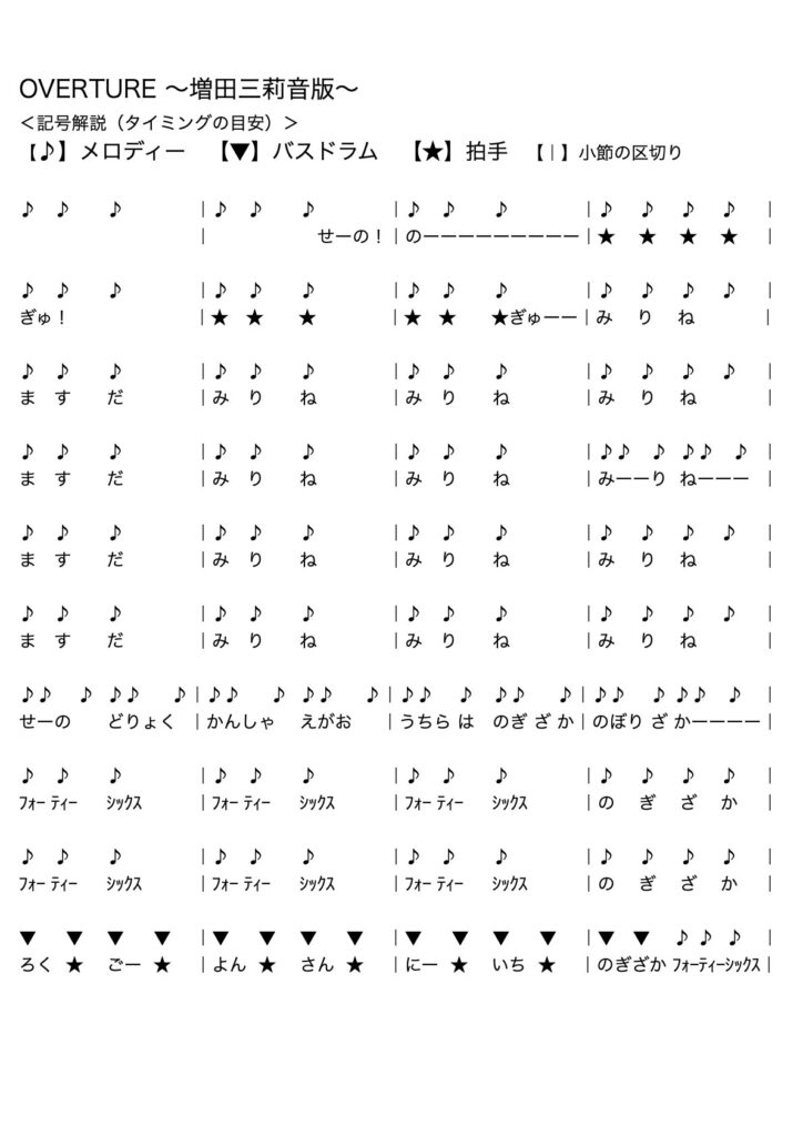 メインの3音部分に「ますだ」「みりね」、4音部分に「みりね」を